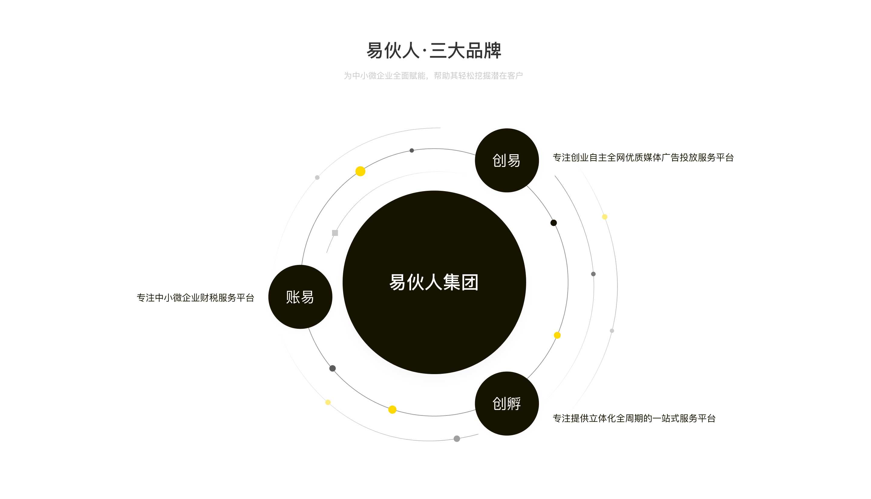 集團(tuán)旗下三?業(yè)務(wù)品牌:創(chuàng)易、賬易、創(chuàng)孵,整體業(yè)務(wù)涵蓋互聯(lián)??告、?商財(cái)稅、企業(yè)云服務(wù)、IT研發(fā)、創(chuàng)業(yè)企服、項(xiàng)目投資等主流板塊,集團(tuán)總部位于廣西南寧市,業(yè)務(wù)覆蓋地域桂、瓊、黔、陜、青、遼等地